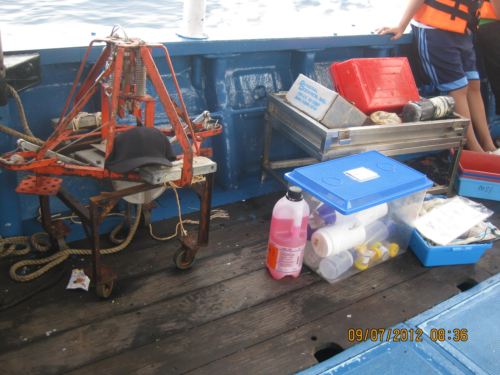 ada a few instruments nak kena handle. yang paling tak tahan, kiteorang sampling dari pukul 2 petang sampai 6 petang. group aku ada 14 orang, hanya 5 orang je tak mabuk laut, kekeke! (aku mabuk laut jugak weh, mana tak mabuk kalau kapal da benti 2,3 jam, terumbang ambing, maunye bagi ikan makan muntah, haha!)